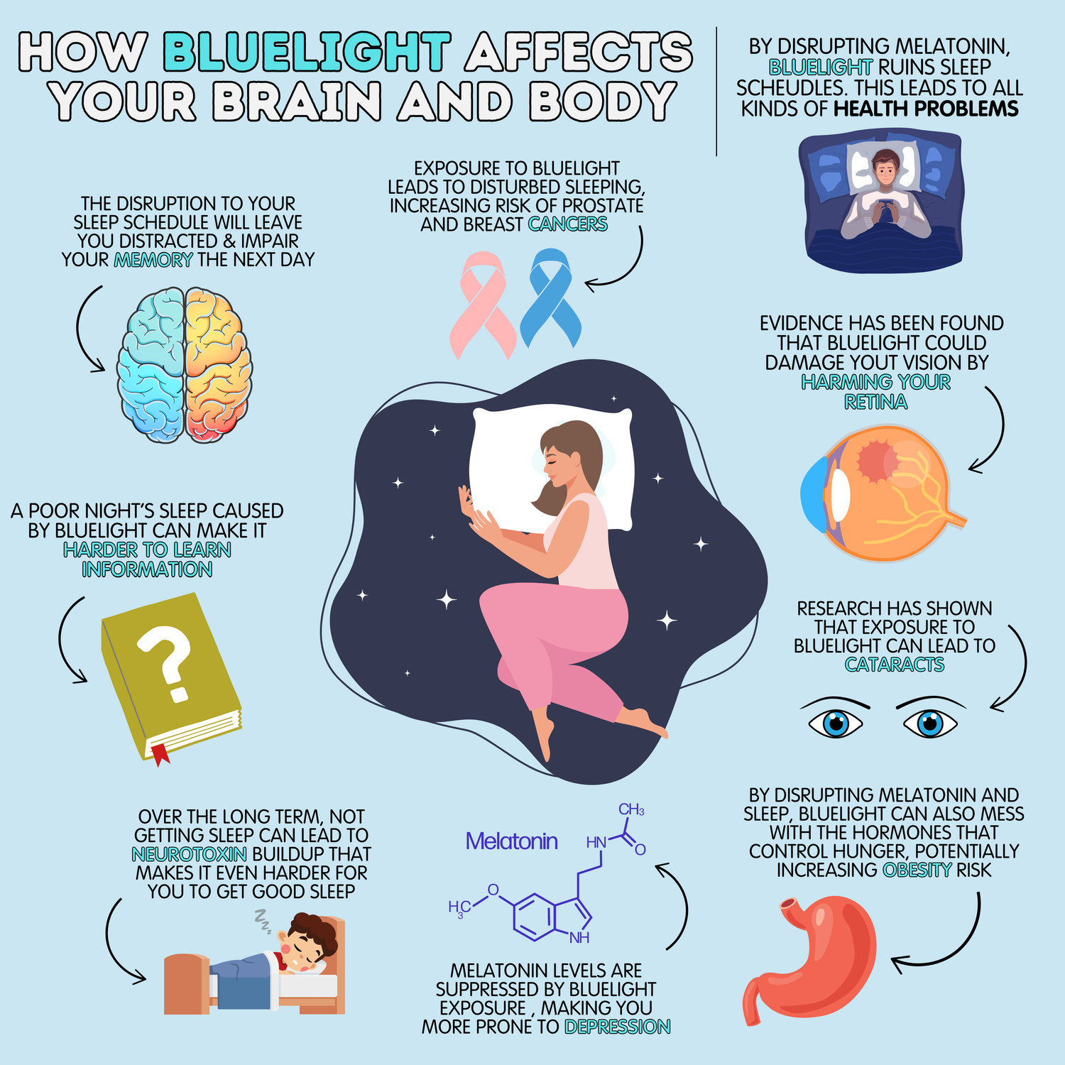 Studies show that Bluelight Exposure also Disrupts Your Melatonin Levels Significantly
